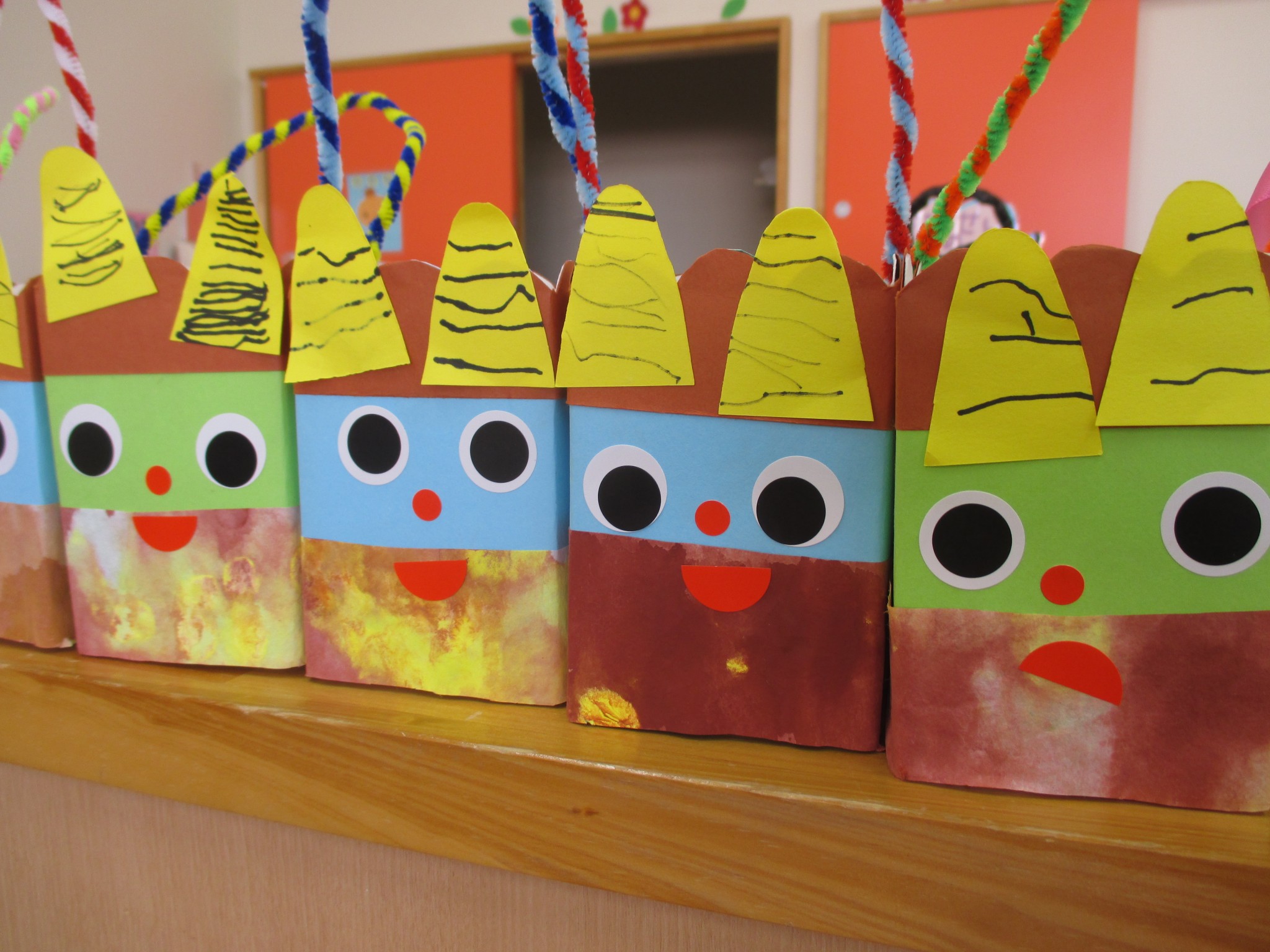 2月製作 鬼の豆入れバッグ 保育園・幼稚園・こども園- ほいくのおまもり。