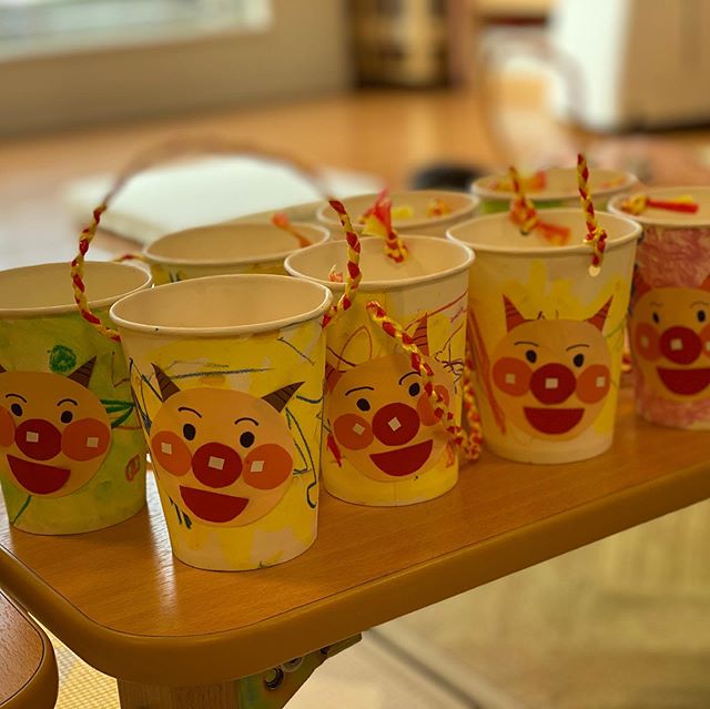 0歳児ひよこ組さんの豆入れ製作の紹介です😊 それぞれとっても可愛い鬼のお顔が出来ました🙆♀️◎認定こども園えほんの森認定こども園保育園幼稚園0歳児豆入れ製作節分まめまき求人募集保育士幼稚園教諭保育教諭看護師北海道恵庭市恵庭。