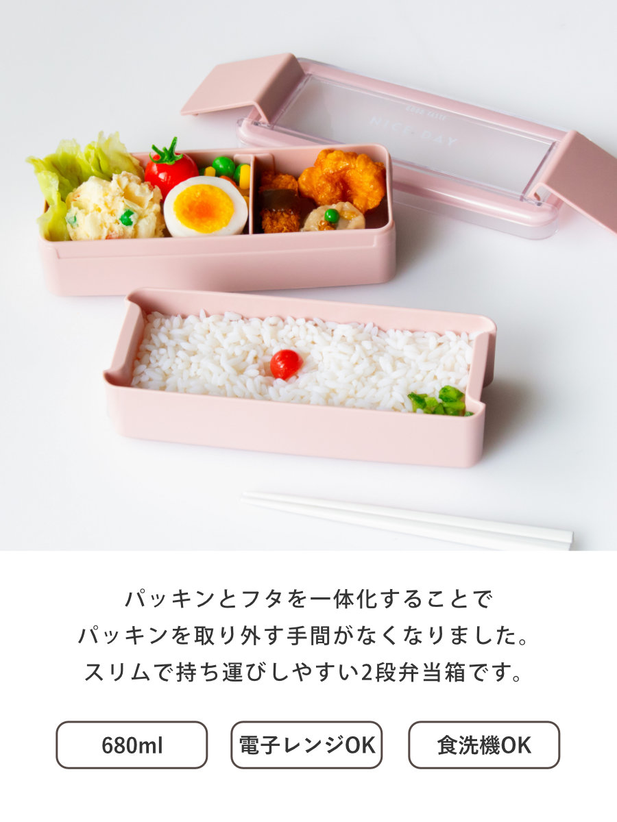 お弁当箱 イージーケアランチボックス2段 680ml弁当箱 ランチボックス パッキン一体式 レンジ対応 食洗機対応 大人 女子。