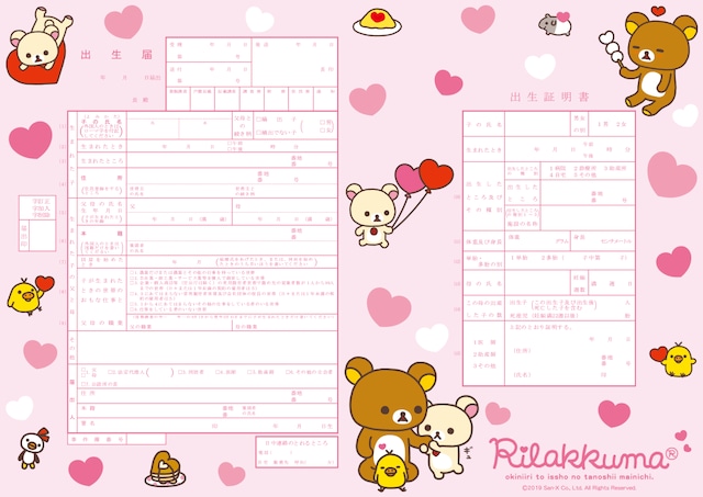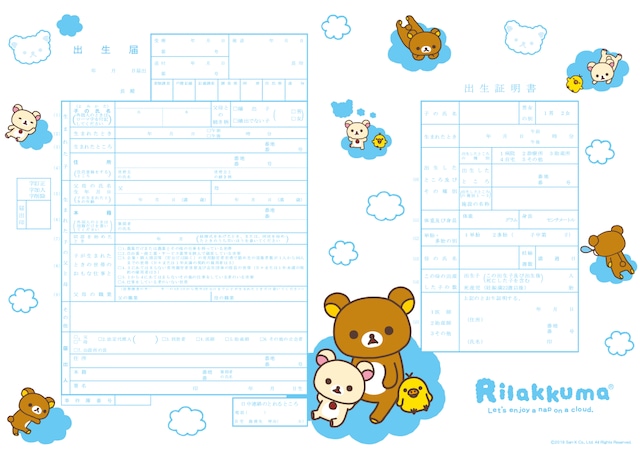 令和>キャラクター出生届 リラックマ おともだち婚姻届・出生届製作所。