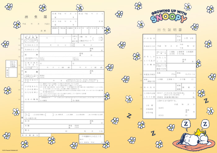 SNOOPYの出生届が新登場!実際に役所に提出できる、7デザインの出生届を4月6日 水 より発売開始株式会社メイションのプレスリリース。
