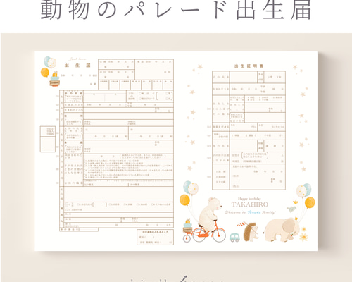 出生届 ✦ かわいい動物たちのパレード しろくま・ハリネズミ・ゾウ役所へ提出できる出生届雑貨・その他 hoccoほっこ 婚姻届・出生届通販 16466329Creema クリーマ。