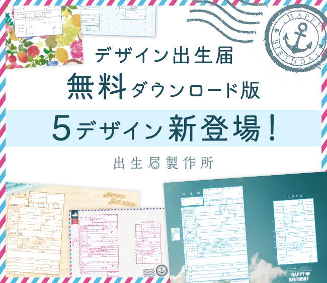 実際に提出できる、販売中の90種類以上のデザイン出生届がいつでも無料でダウンロード可能に!~日本初のデザイン出生届の通販サイト『出生届製作所』にて6月17日 金 よりスタート~株式会社メイションのプレスリリース。