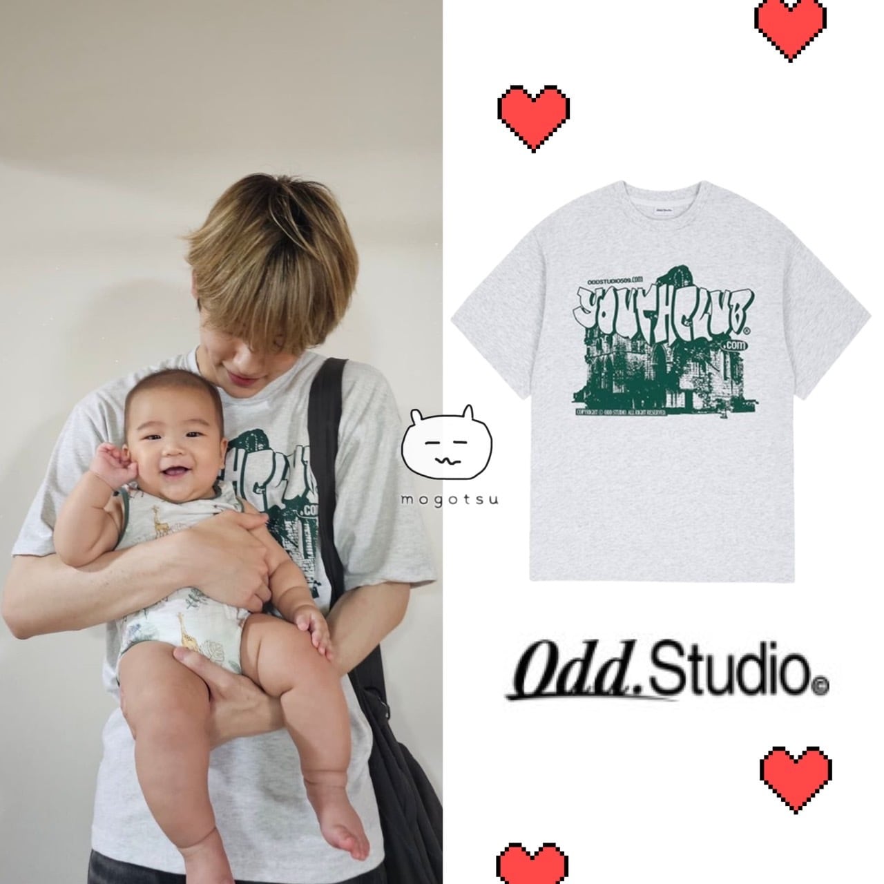 ☆TXT スビン 着用!! ODDSTUDIO Youthclub Graphic Over Fit t-shirt - white melangeもごつ。