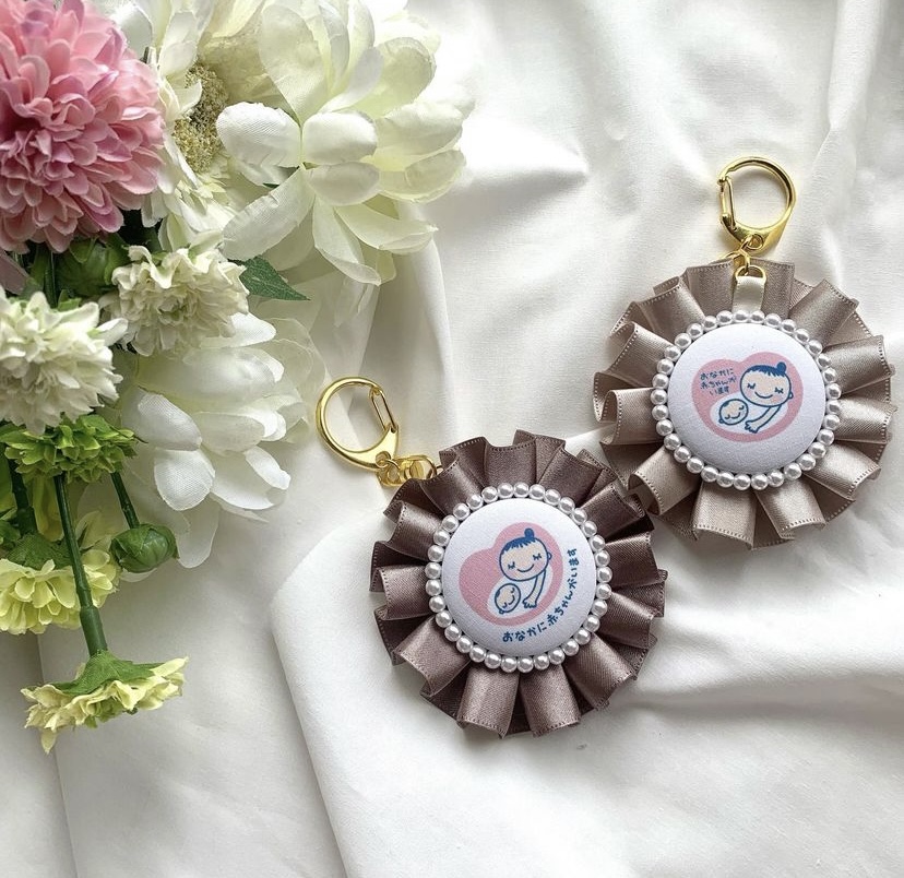 楽天市場マタニティロゼットマタニティマーク キーホルダー ロゼット 可愛い 安産祈願 お祝い プレゼント ギフト プチギフト 妊娠中 妊婦妊娠祝い プレママ : 消しゴムはんことギフトのエピリリ。