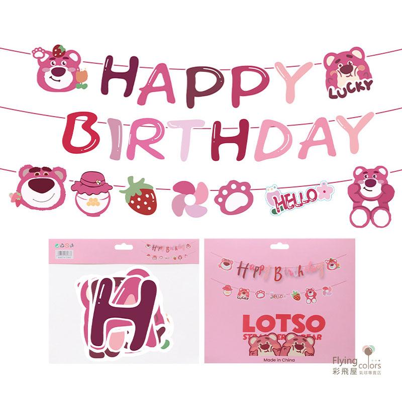 草莓熊生日快樂拉旗 分體字母- 彩飛屋氣球專賣店。