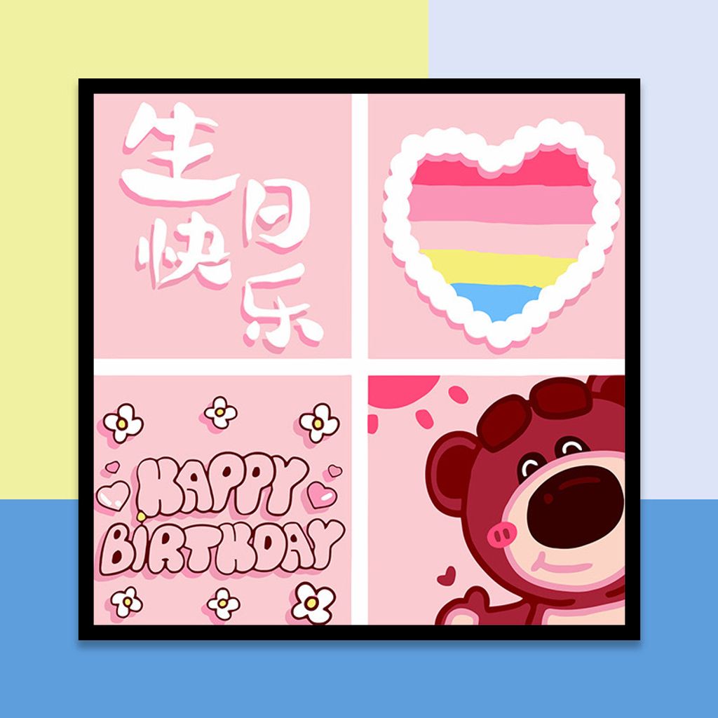 RD065 草莓熊生日快乐数字油画30*30cm – Jn girlstyle。