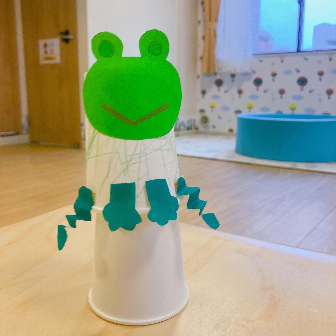 廃材工作 牛乳パックでピョンピョン跳ねるカエル 手作りおもちゃ。