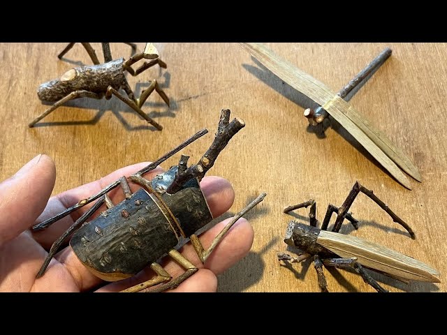 木の枝でつくる昆虫工作。実物大のカブトムシ、バッタ、トンボ、カマキリの作り方動画全公開!夏休み自由研究にどうぞ。