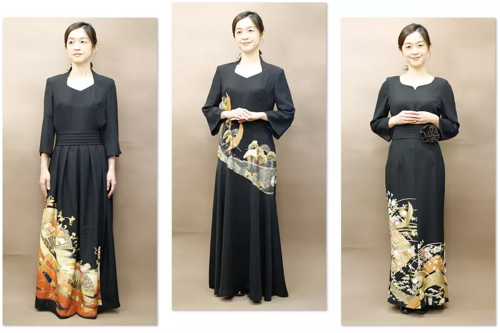 留袖のかわりに着れるおしゃれな黒留袖ドレス・モダンでおしゃれな留袖ドレス・着物ドレスレンタル それいゆ着物レンタル。