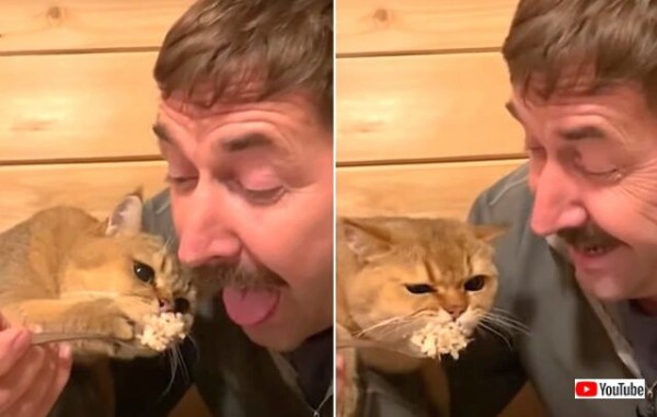 愛情溢れるキスが炸裂!腕立て伏せに励む飼い主さんと猫とのラブラブタイムねこナビ。