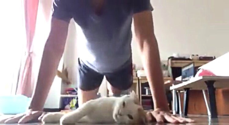 遊ぼうにゃ!飼い主さんの腕立て伏せを邪魔してラブラブしたいニャンコねこのきもちWEB MAGAZINE。