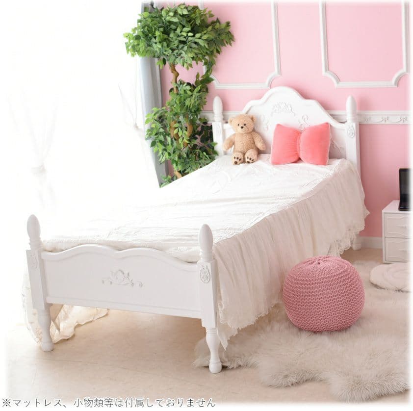 楽天市場10 1限定☆10%クーポン配布中 姫系 ベッド シングル 収納付きベッド ベッドフレームのみPretty プリティシリーズシングル ベッド 引出し付き 引き出し プリンセス ベッド すのこベッド 木製 白 ホワイト 子供用 ロマンティック 姫 女の子 かわいい。