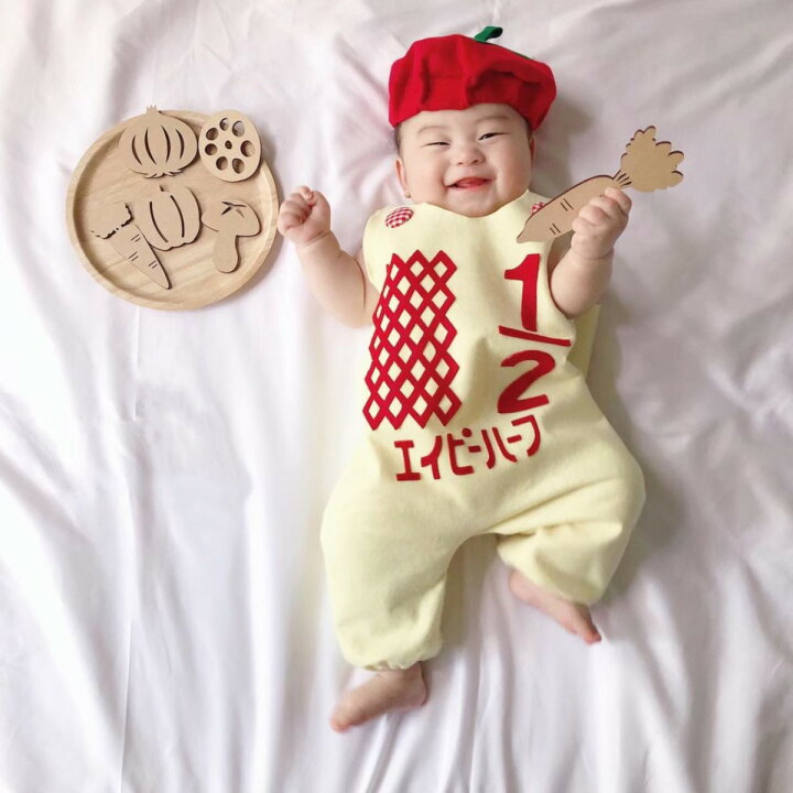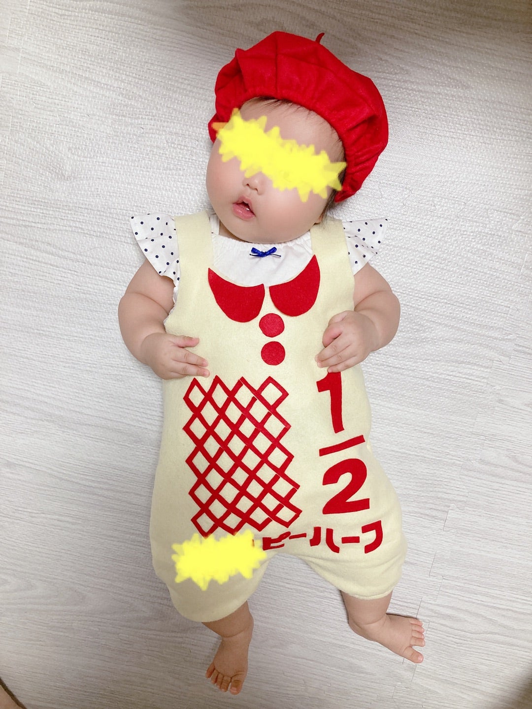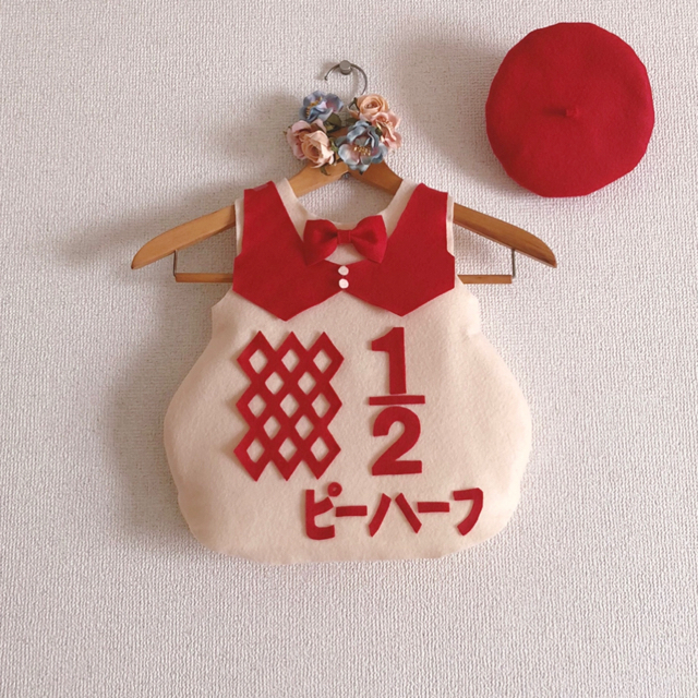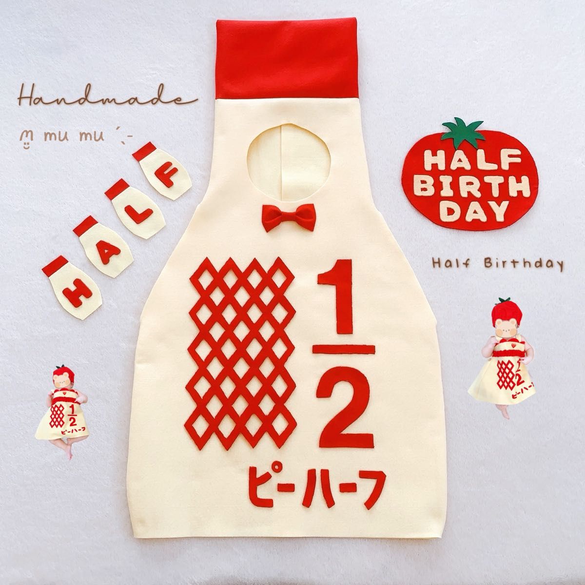 マヨマヨ ハンドメイド ハーフバースデーキューピーハーフ ハーフバースデー衣装 ピーハーフ 1 2 手作り コスチューム。