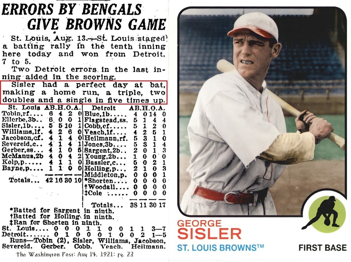 百年ニュース 1921 大正10 8月13日 土MLBセントルイス・ブラウンズのジョージ・シスラー選手が2年連続となるサイクルヒットを記録した。前年 シスラーは257本のMLB最多安打を記録。これは吉塚康一 Koichi Yoshizuka。