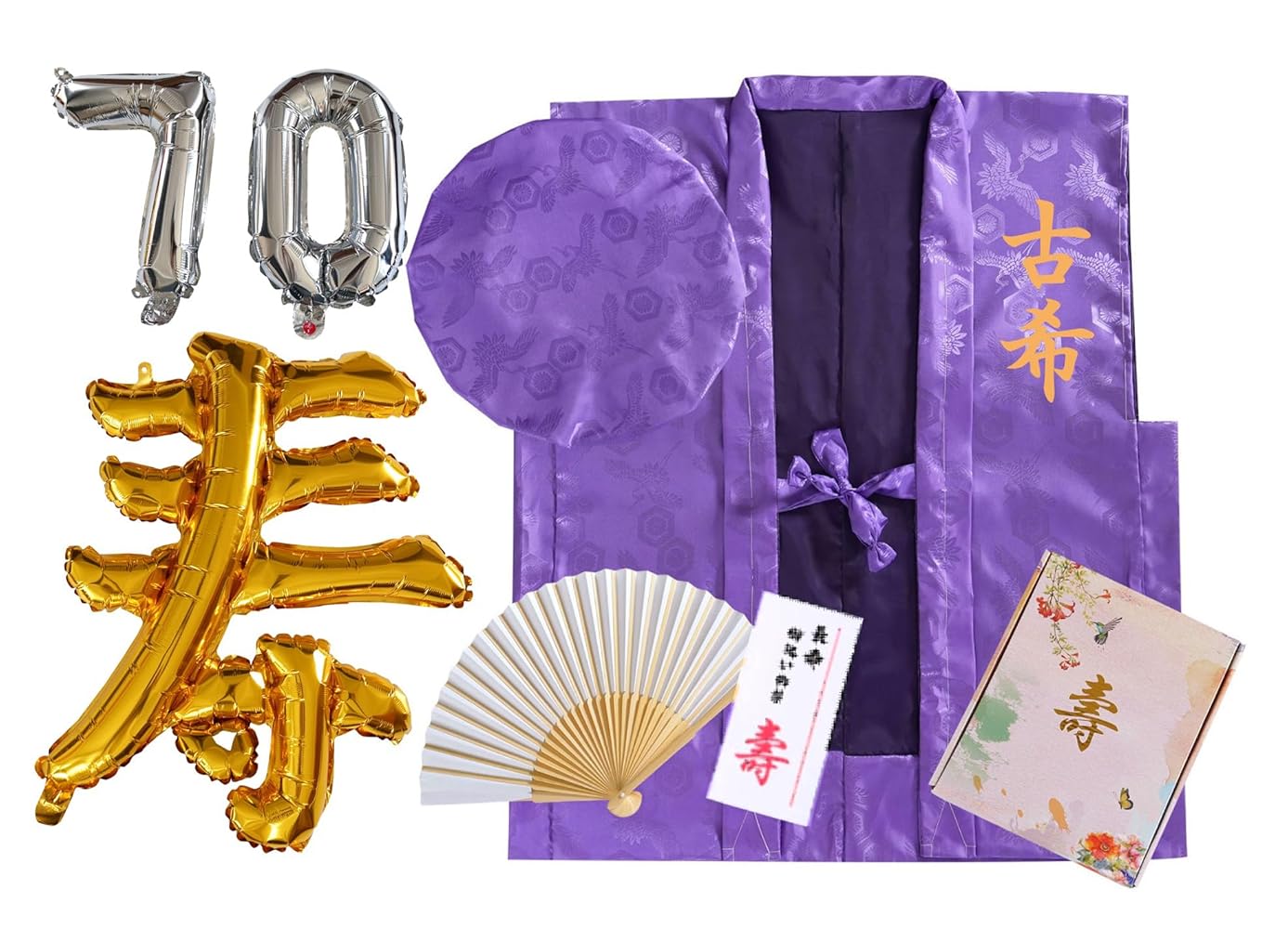 Amazon古希祝い 長寿祝いセット 2点還暦・古希・米寿敬老の日 父の日 母の日古希 紫 ちゃんちゃんこ 古稀 70歳 喜寿 77歳傘寿 80歳ちゃんちゃんこ・はんてん 通販。