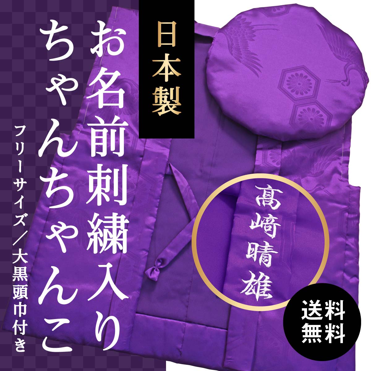 名入れ刺繍 ちゃんちゃんこ 長寿 紫色古希祝い・喜寿・傘寿・卒寿お名前刺繍入り 長寿祝い 古希70歳・喜寿77歳・傘寿80歳・卒寿90歳ちゃんちゃんこセット ネーム刺繍入りのちゃんちゃんこと大黒頭巾と末広にお祝いの栞と化粧箱の5点セット<R> メール便不可。