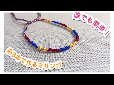 ミサンガ 糸3本でできる簡単ミサンガの作り方~初心者さんでも大丈夫!~ - YouTube。