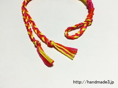 ねじり編みのミサンガ ~2色使い~の作り方 手順10ブレスレットアクセサリー アトリエハンドメイドレシピ 作り方 と手作り情報サイト。