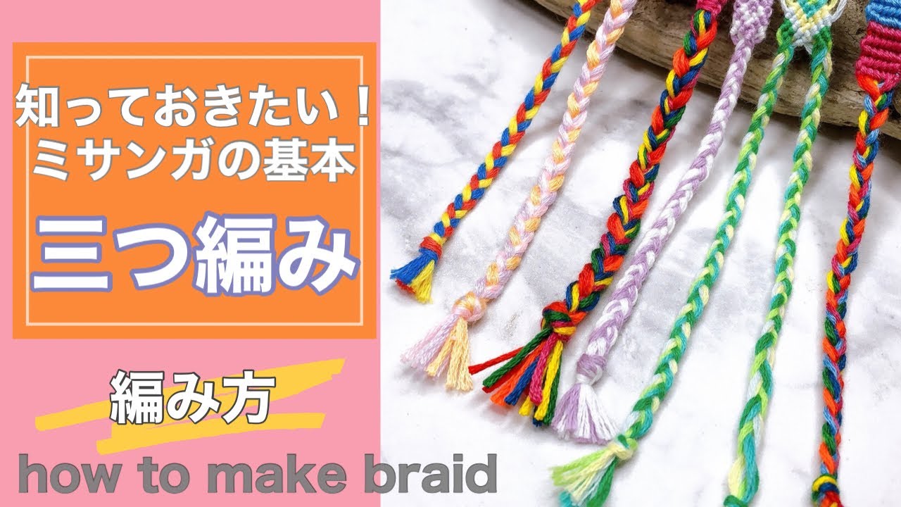ミサンガ 保存版🔑基本の三つ編みの編み方解説動画 braid 미산가실팔찌 friendship braceletmacrame。