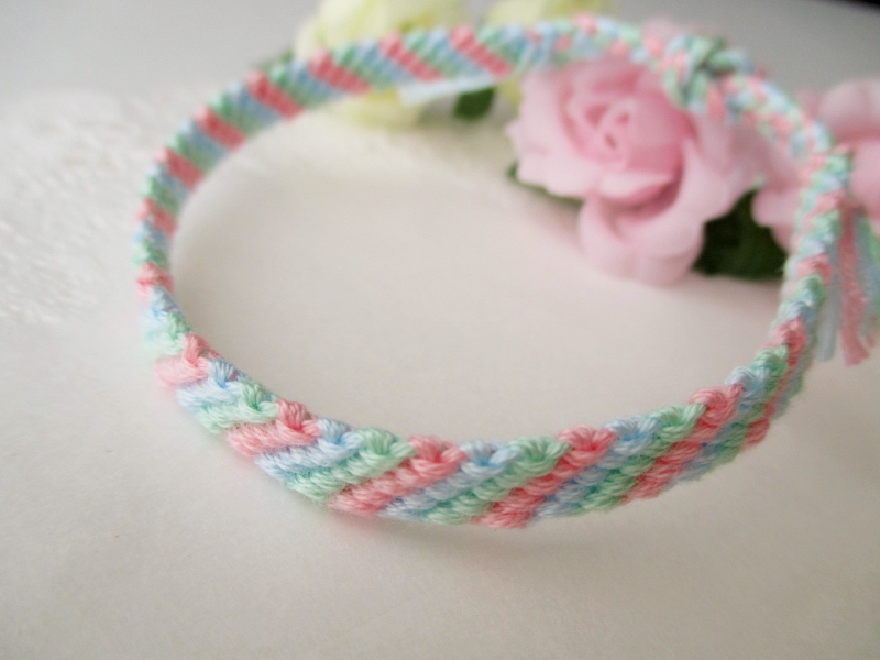 斜めストライプのミサンガ ~3色使い~の作り方ブレスレットアクセサリー アトリエハンドメイドレシピ 作り方 と手作り情報サイト。