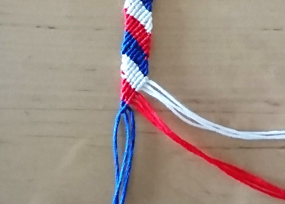 ミサンガ 矢羽模様の編み方① 動画で解説 3色の矢羽ミサンガ - SHUMI-MOmagazine。