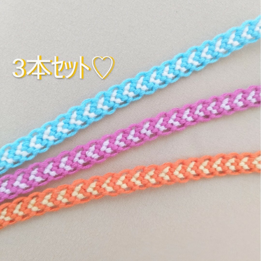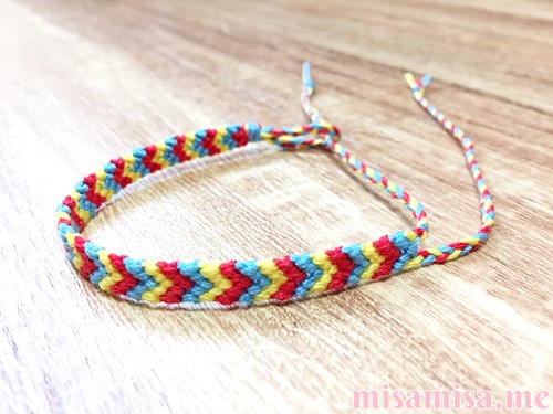 片方輪っか V字模様ミサンガの作り方3色3本- ミサンガミサミサ。