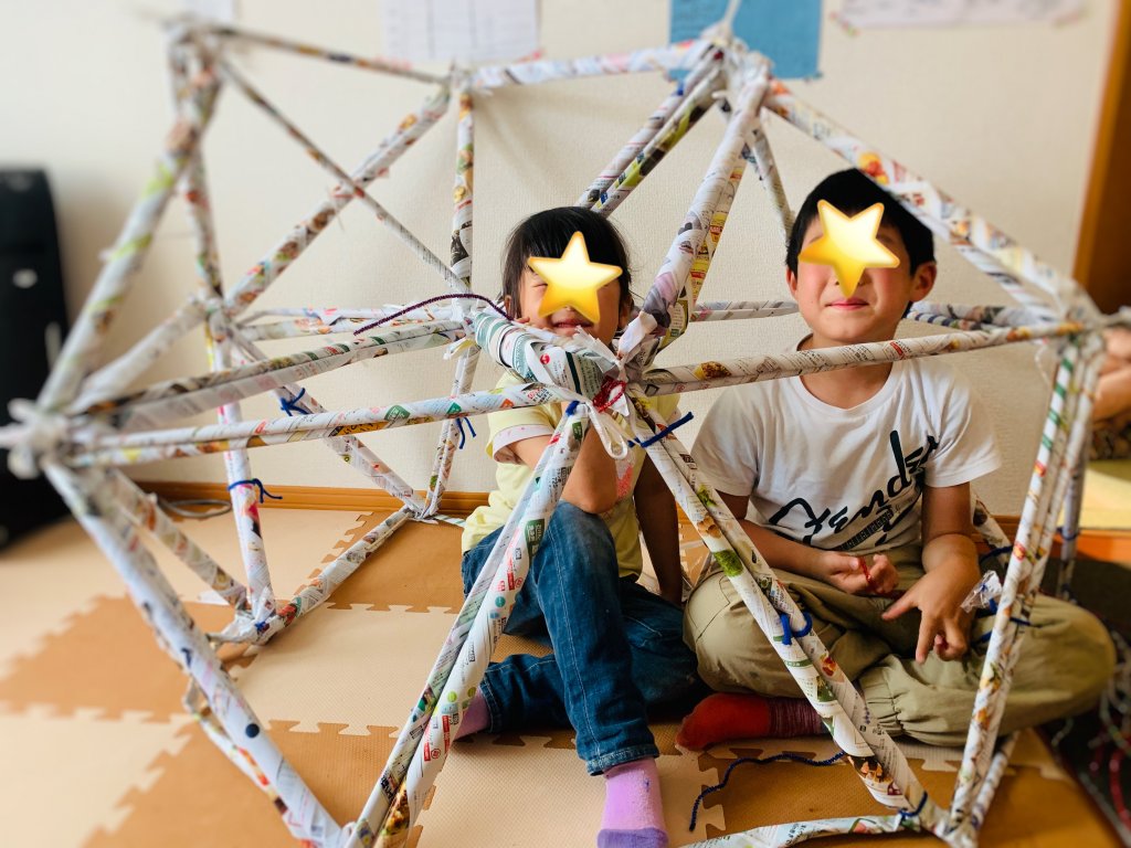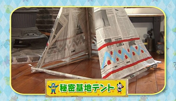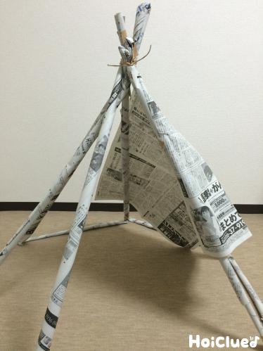 新聞紙で作ったテントの作り方:宝来こども園社会福祉法人 大谷菩提樹会 北海道音更町・帯広市。