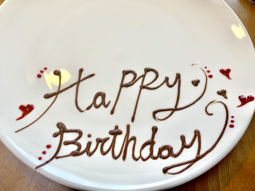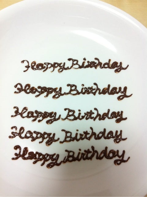 文字練習。誕生日プレートチョコペンアートバースデープレートチョコペンショコラグラフィーメッセージプレートチョコレートアートchocolatgraphy。
