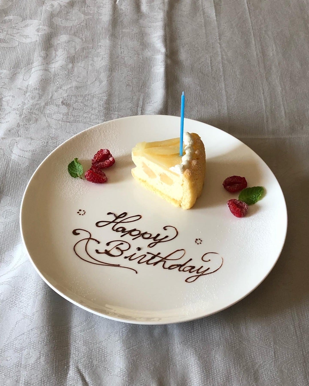 チョコペンパイピングメッセージプレートバースデープレートレタリングお祝いpipingchocolateletteringsweets。