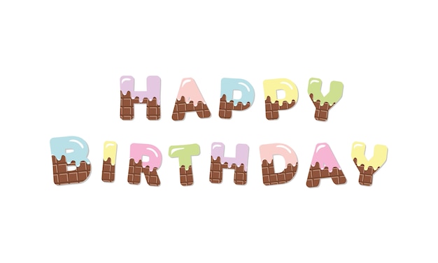 ハッピーバースデーは、チョコレート色の文字を溶かします。Premiumベクトル素材。
