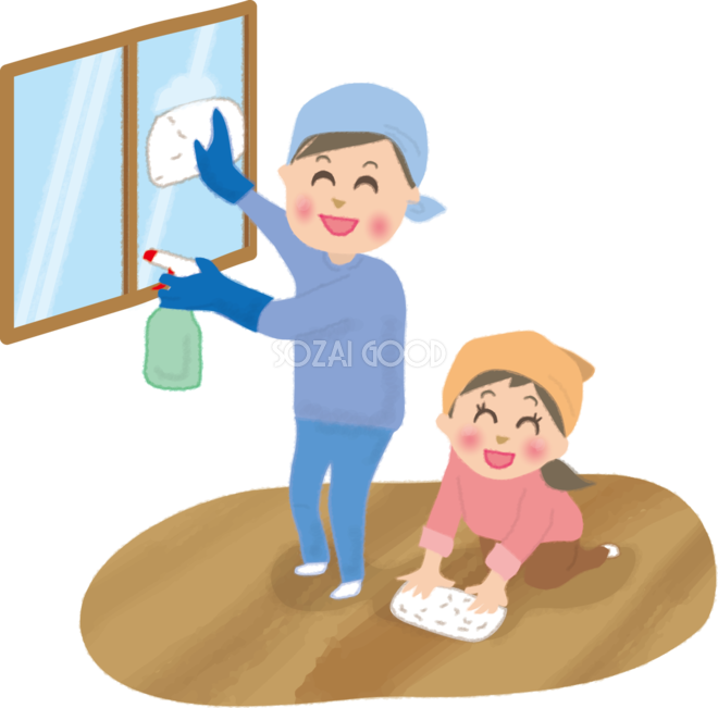 大掃除をする親子のイラスト🎨 フリー素材 看護roo! カンゴルー。