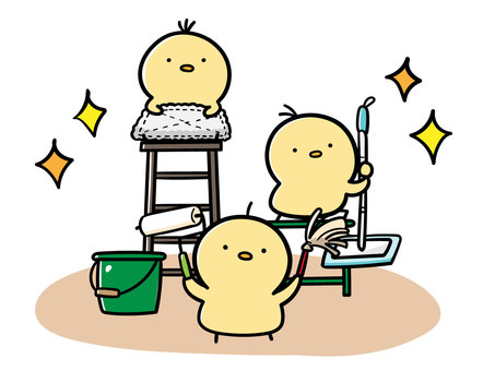掃除するかわいいひよこセットイラスト - No: 22996699無料イラスト・フリー素材なら「イラストAC」。