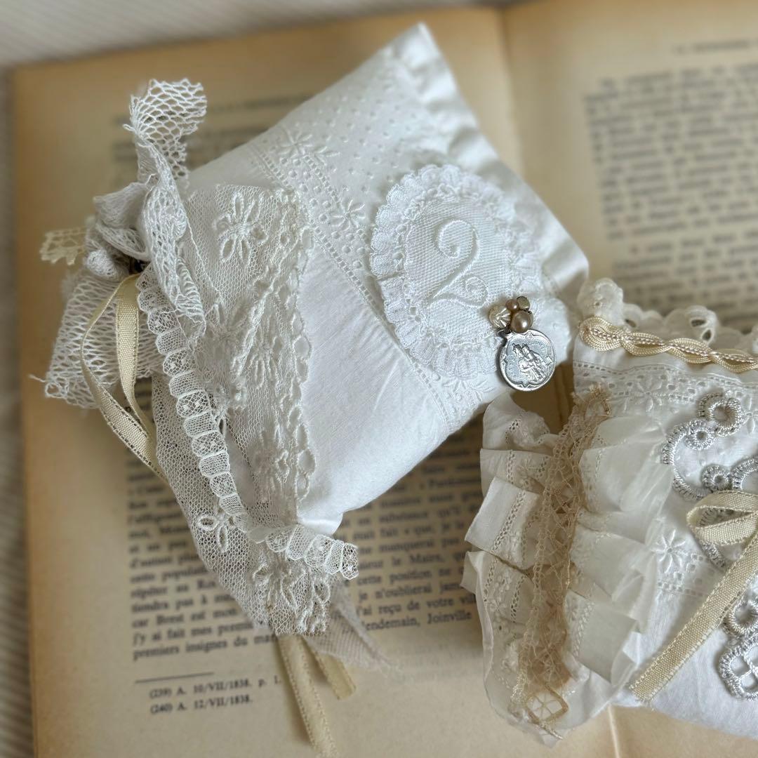 プチポヮン飾りとレースのクッション ハンドメイドのピンクッション♡2個セット レースとリボン刺しゅう♪ヴィクトリアンな手作り ミニクッションその他インテリア雑貨 chisatofactory 通販 15218801Creema クリーマ。