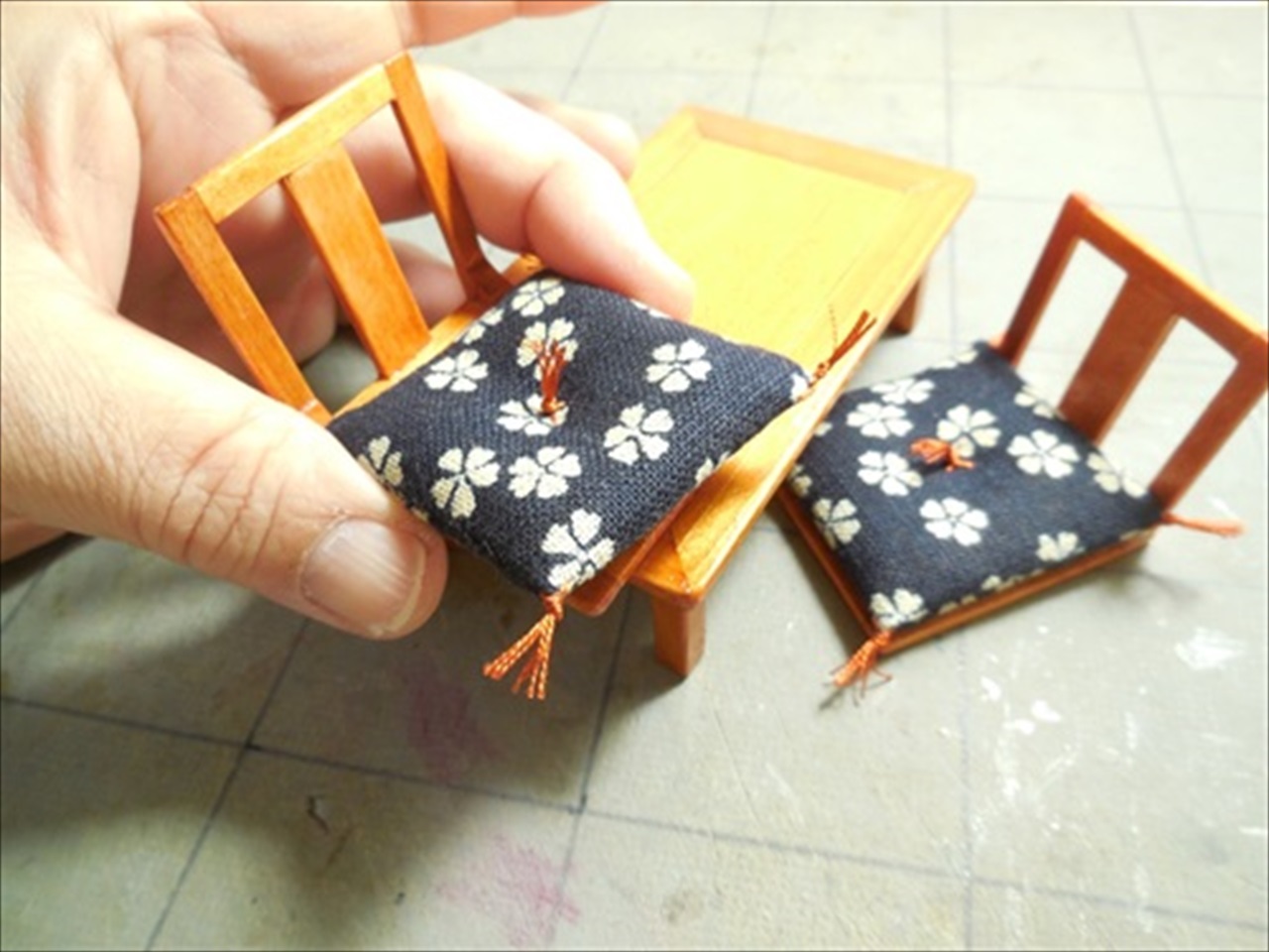座椅子用のミニチュア座布団を作るミニチュア世界をつくる。