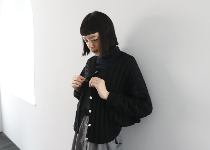 小柄で華奢なフェミニンタイプのロングボトムファッションMIROIR。