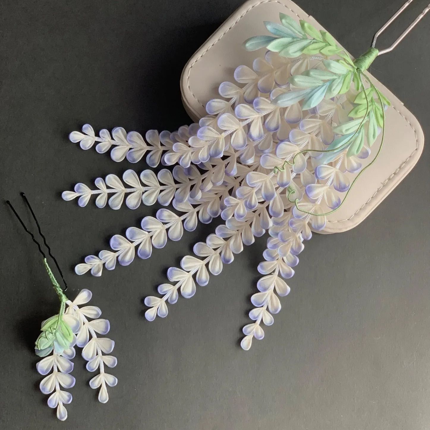 つまみ細工 ハンドメイド 藤の花の髪飾り 藤のかんざし 紫色 七五三 和装髪。