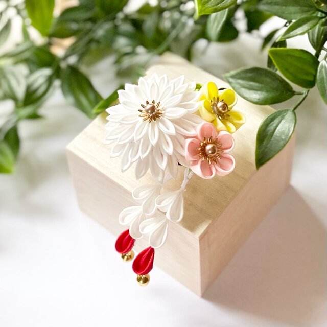 M548つまみ細工の髪飾り 花明かり つまみ細工 髪飾り 絹100% 成人式 七五三 結婚式 花 水引 絹 寿 花 フラワー ヘアアクセサリーホワイト 振袖向け 卒業式 和装 着物 アレンジ自在 - 福岡県宮若市ふるさとチョイス - ふるさと納税サイト。