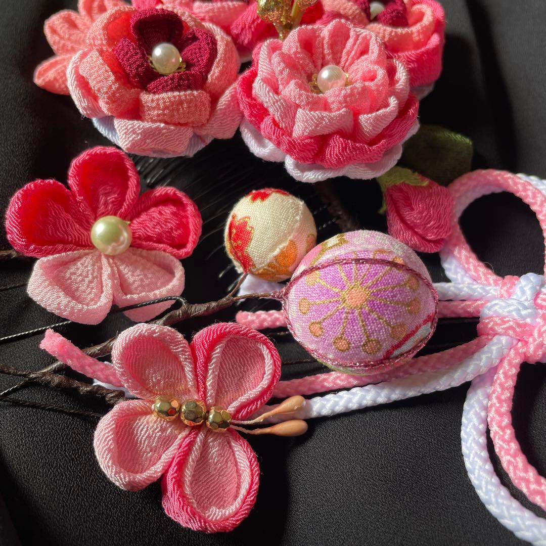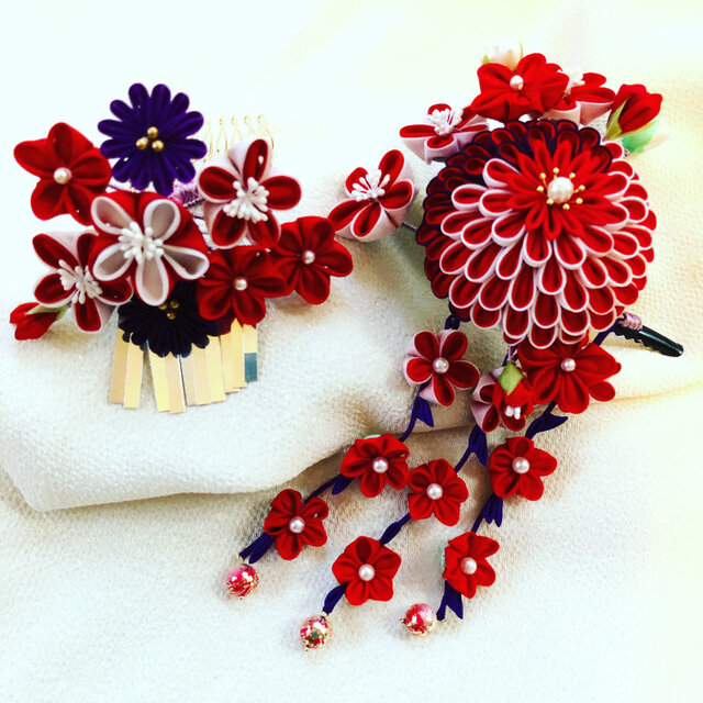 つまみ細工七五三髪飾りセット 飛梅iichi 日々の暮らしを心地よくするハンドメイドやアンティークのマーケットプレイス。