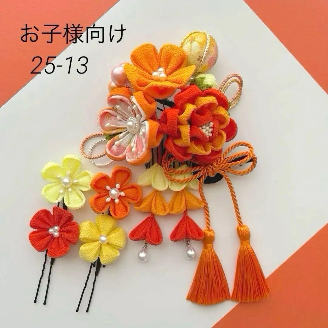 つまみ細工髪飾り 七五三 ひな祭り 卒園式 オレンジ系 ハンドメイド - メルカリ。