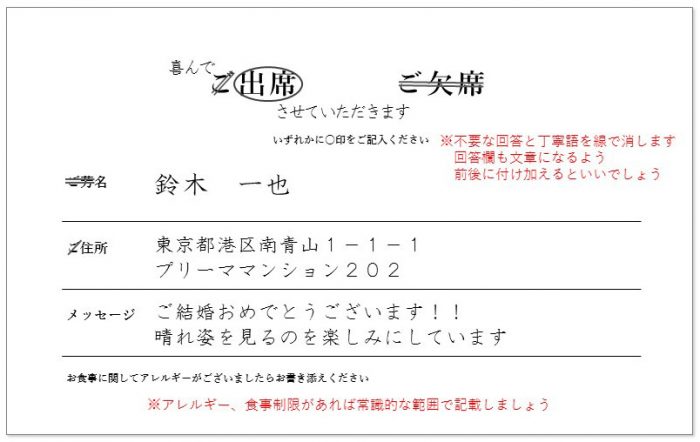結婚式招待状の「返信ハガキ」の正しい書き方を解説marry マリー。