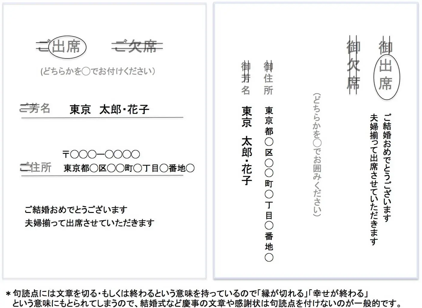 結婚式招待状の返信はがきの書き方!出席・欠席や縦書き・横書き例文!ゆび輪区。