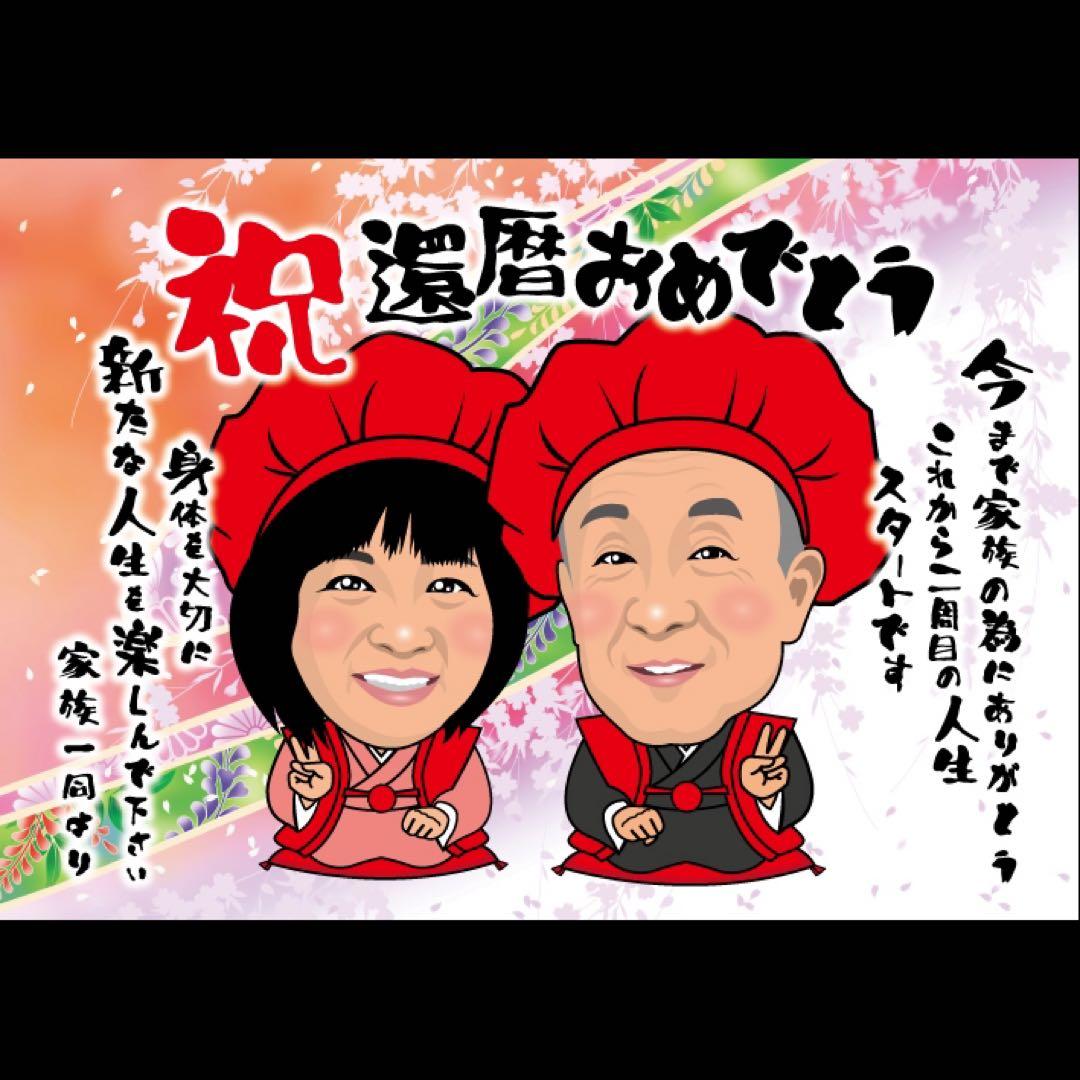 キャラ風似顔絵★還暦祝い誕生日プレゼント似顔絵。