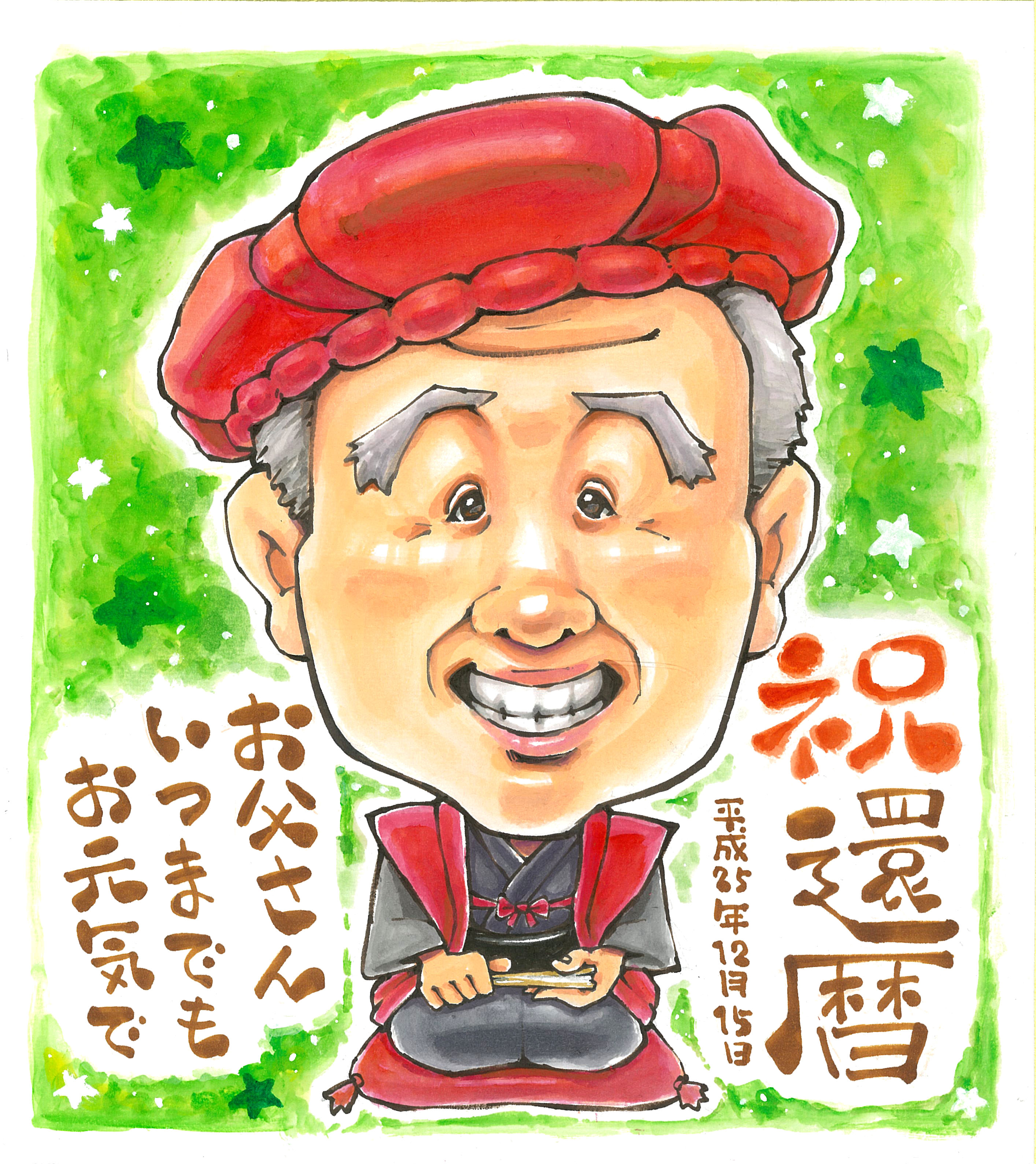 還暦祝いに似顔絵をプレゼント。お名前入りポエムも人気 - オレンジスマイル。