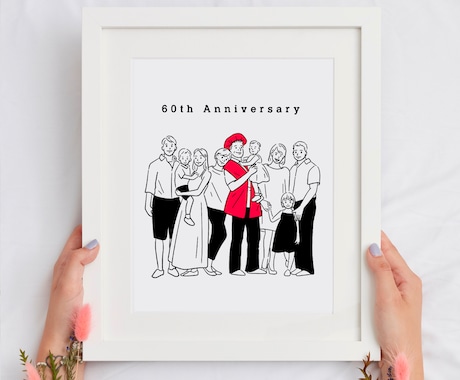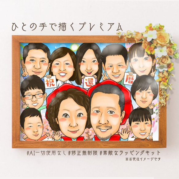 大人数 似顔絵プレゼント☆還暦祝い 家族の笑顔の額縁用似顔絵オーダー おじいちゃん・おばあちゃんの還暦、古希、喜寿、傘寿 絵画 似顔絵ショップ※受付中通販 17113759Creema クリーマ。