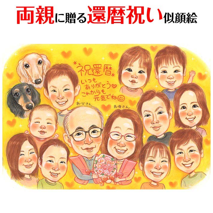 還暦祝い 似顔絵 プレゼント 名入れ 父 母 両親 家族 おしゃれ のお祝い 喜寿 喜寿祝い 古希 傘寿 卒寿 米寿 男性 女性「楽しくてキュートな似顔絵」 : 誕生日プレゼント・ネット - 通販 - Yahoo!ショッピング。