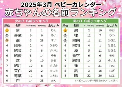 2025年『3月生まれベビーの名付けトレンド』発表!「春ネーム」が特大トレンド!春らしい名前が人気急上昇!女の子 は「サクラネーム」・「フラワーネーム」、男の子は「はるネーム」が人気☆。