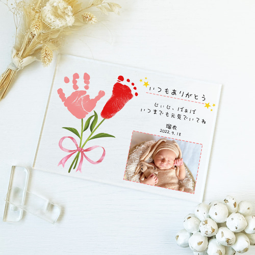敬老の日プレゼント♡手形足形アート ※文字を変えて用途変更可能♪の通販 by marigraphy's shopラクマ。