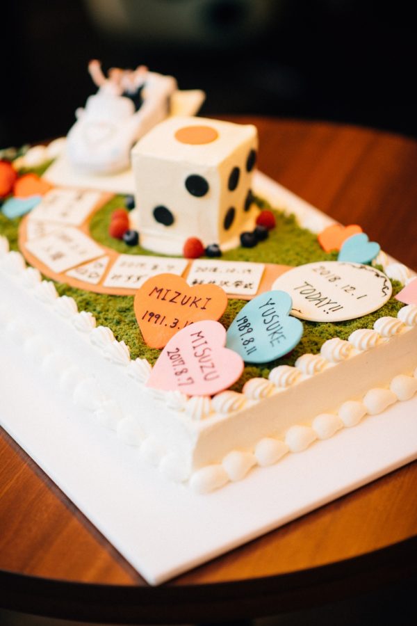 今までのふたりの歩みを、 「マス」にのせて表現した人生ゲーム風ウェディング! 出会い、初デート、旅行、プロポーズ思い出のシーンがどんどん現れてゲストの皆さんも思わず笑顔が溢れます そしてゴールには「WEDDING」のマス💍 “これまで”と“これから”をつなぐ お。