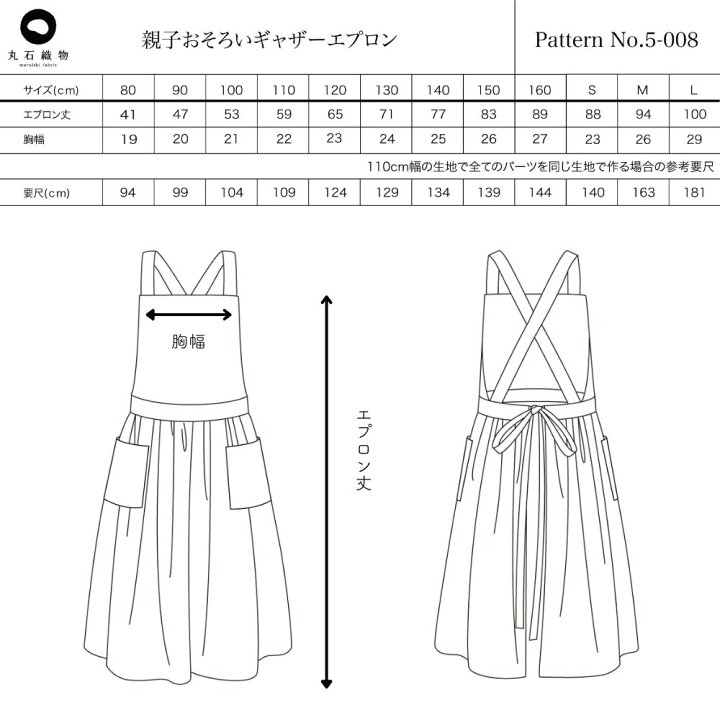 楽天市場商品到着後レビューで100円OFFクーポンプレゼント縫い代付き 親子お揃いギャザーエプロン型紙 80~160 S M Lの12サイズワンサイズ型紙 別紙A4仕様書 商用可能: 生地通販のマルイシ。
